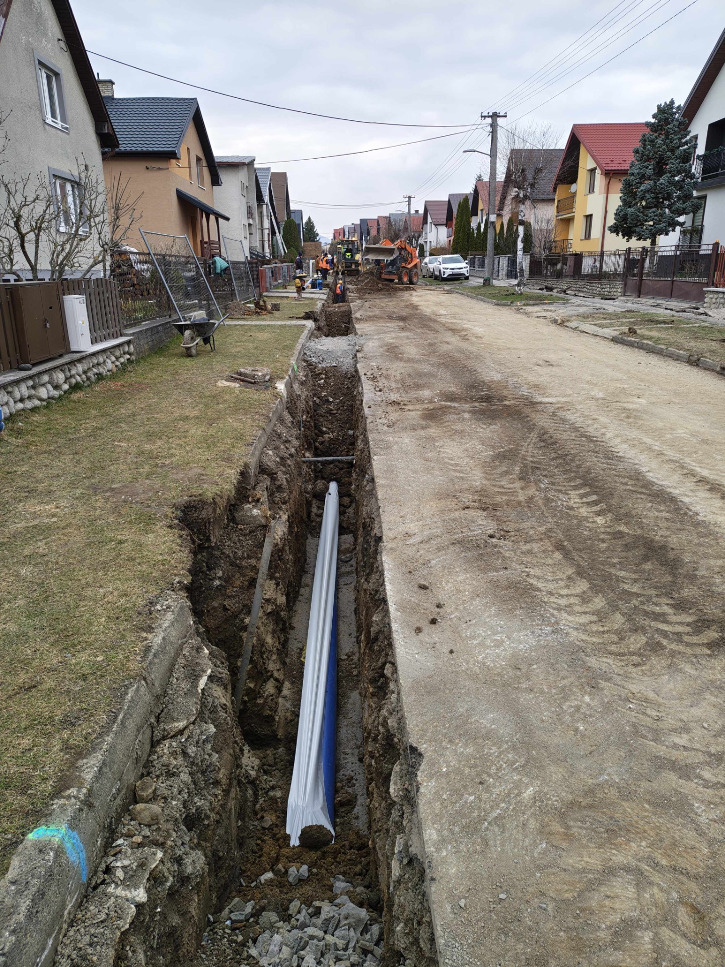 V priebehu sledovaného obdobia do 31. marca 2026 bola realizovaná výmena vodovodného potrubia v celkovej dĺžke 396,07 m a to výkopovou technológiou. Zemné práce boli prevedené odstránením podkladaných vrstiev (štrkových, asfaltových aj betónových) a následným výkopom s presunom na dočasnú skládku. V miestach výkopov sa zrealizovalo štrkopieskové lôžko a po osadení potrubia, tvaroviek a armatúr bol zrealizovaný obsyp prehodenou sypaninou, resp. štrkopieskom. Výkopy boli po ukončení montážnych prác zasypané zásypom hutneným po vrstvách. Vo vrchnej vrstve zásypu pod dlažbu resp. asfalt bola použitá štrkodrva frakcie 0/63 v súlade s technickými požiadavkami na spätný zásyp inžinierskych sietí a projektovou dokumentáciou. V ukončených úsekoch sa zrealizovala spätná úprava. V rámci realizovaných prác boli namontované armatúry a novo vybudované potrubie bolo prepojené na existujúcu vodovodnú sieť. Súčasťou realizácie bolo aj zhotovenie 1 nadzemného a 1 podzemného hydrantu.